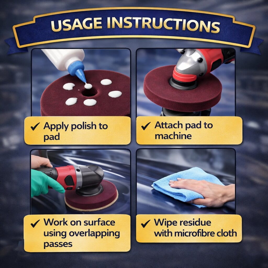 Helps eliminate swirls, oxidation, and light to moderate paint defects, improving surface clarity.