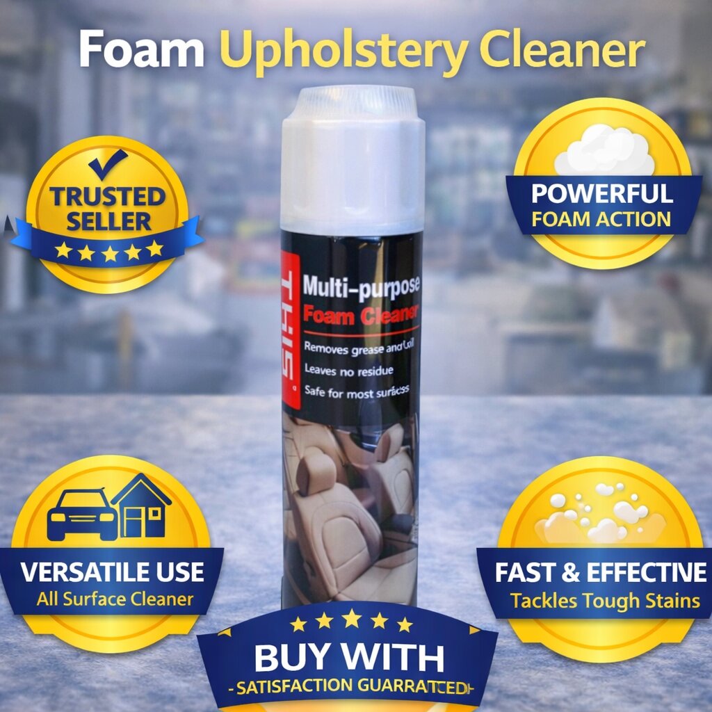 Stubborn upholstery stains that nothing else removed – Foam Upholstery Cleaner worked. Interior restored. Safe on leather too. Trusted product.