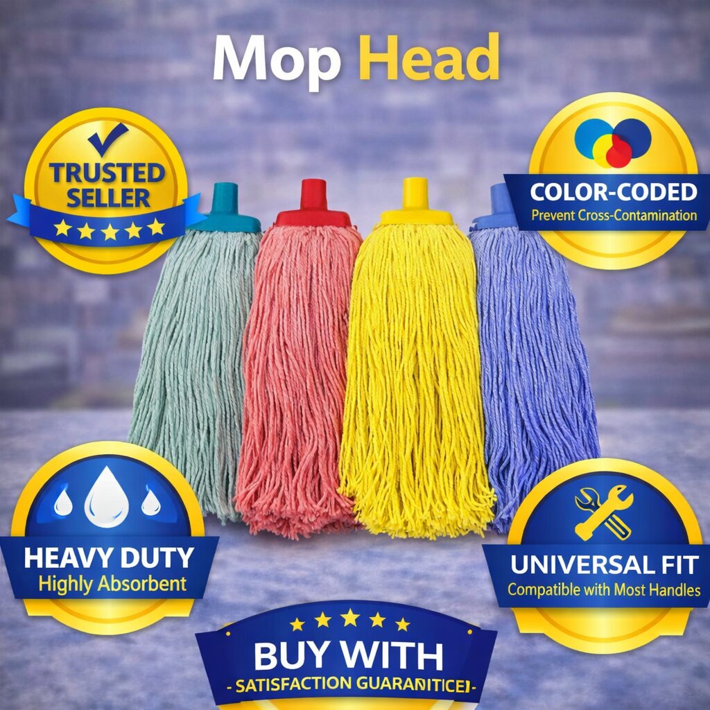 The Mop Head is a commercial-grade cleaning accessory designed for efficient floor cleaning in industrial, hospitality, and janitorial environments. Its high-absorbency material helps remove dirt, spills, and cleaning residue from hard floor surfaces, making it ideal for everyday maintenance in busy environments.