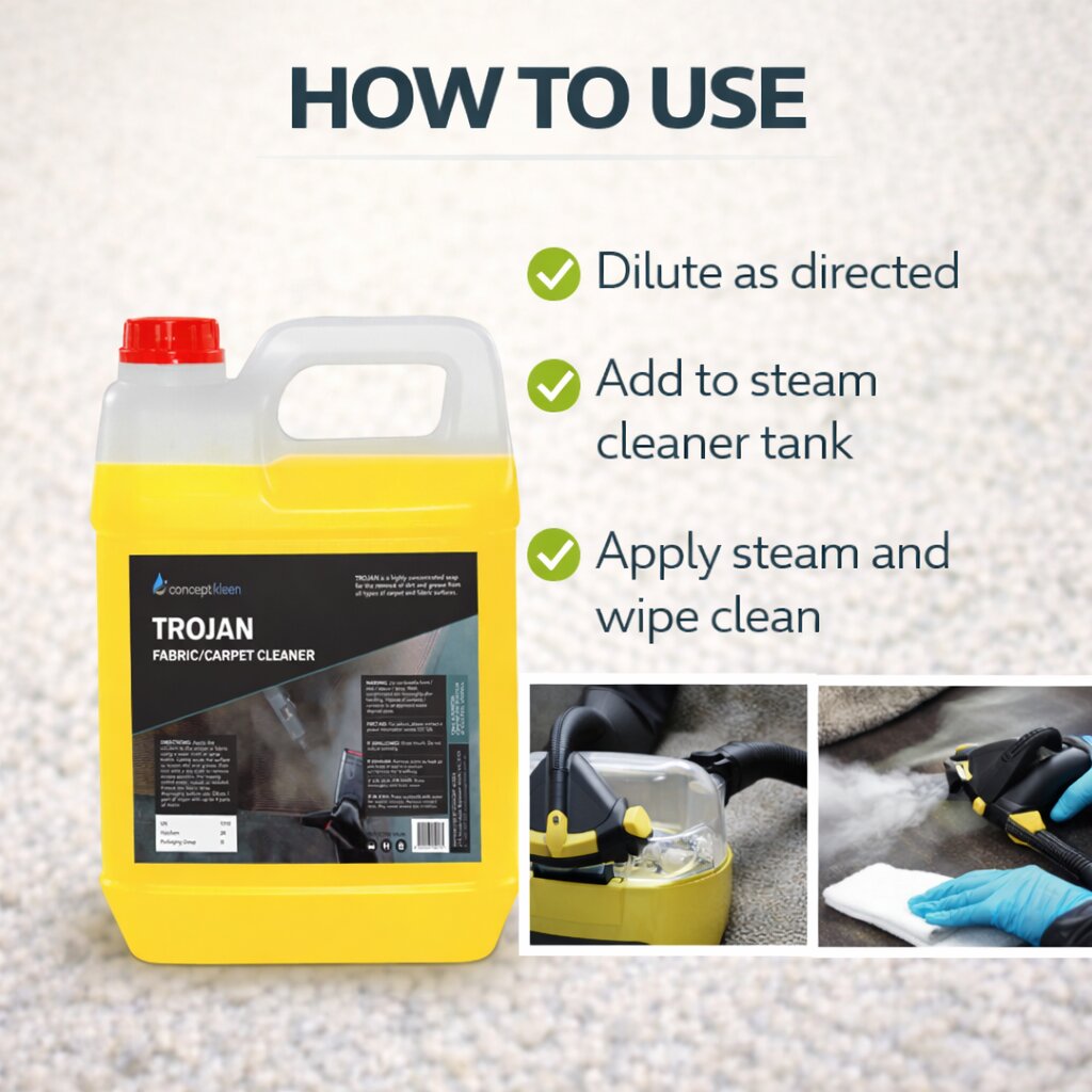 - Concentrated cleaning agent used in conjunction with steam cleaning machines for interior and engine bay sanitisation