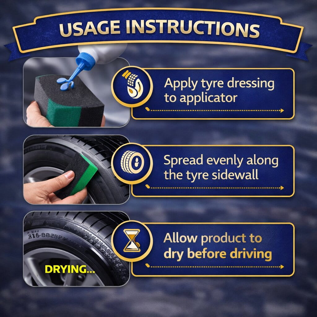 Designed to provide controlled and even application of tyre dressing, enhancing tyre appearance while minimising waste and preventing sling.
