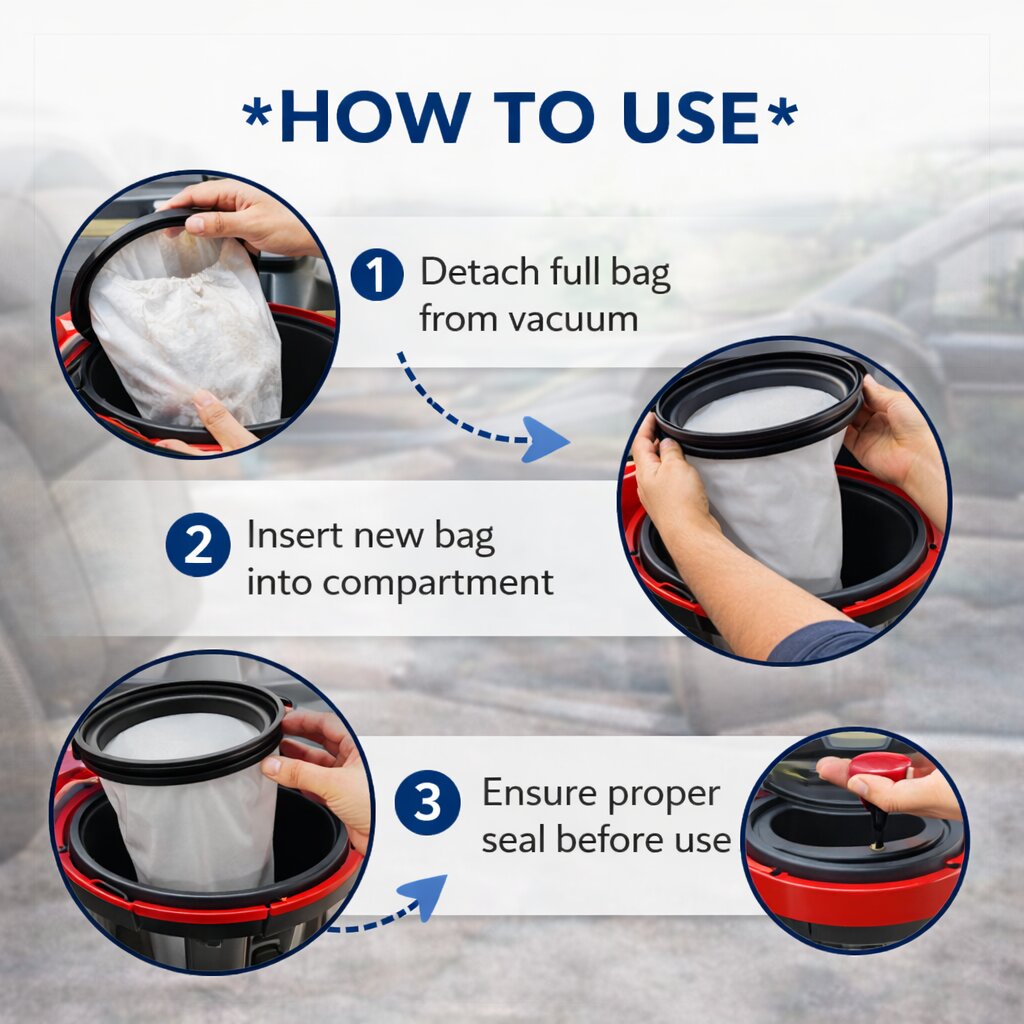 Ideal for industrial vacuum cleaners, car detailing setups, and commercial cleaning environments, this filter bag is essential for maintaining cleanliness and protecting users from dust exposure.